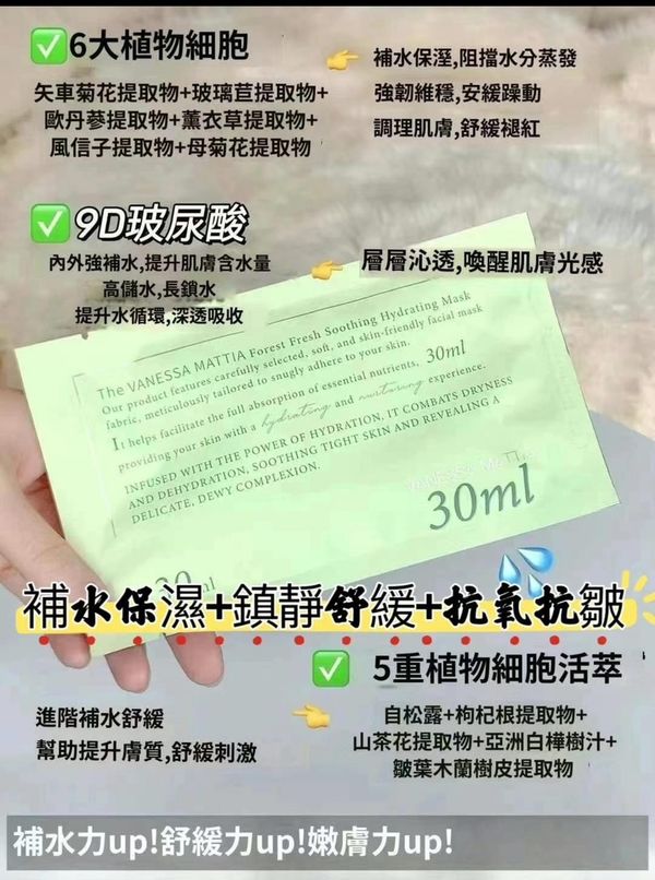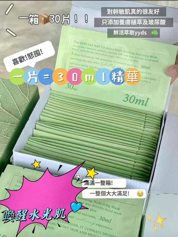 韓國VANESSA MATTIA維艾森林鮮注舒緩保濕面膜(30片/盒)