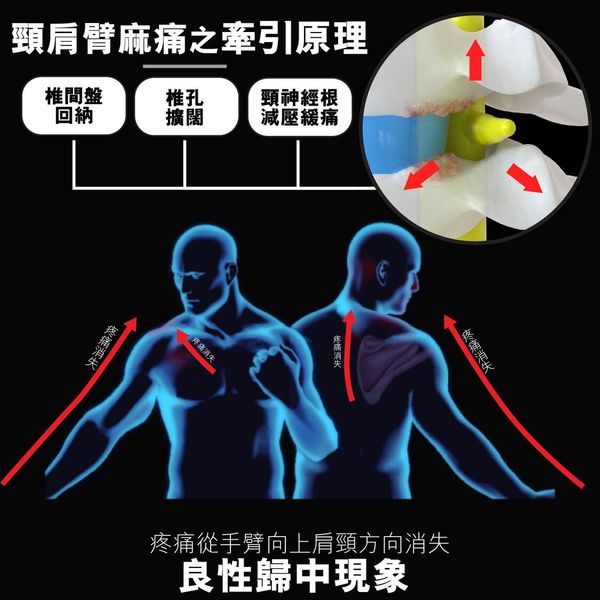-頸椎之牽引是靠頭部的4個支點(前顎,後忱及左右腮骨)和肩膀間的分離力
