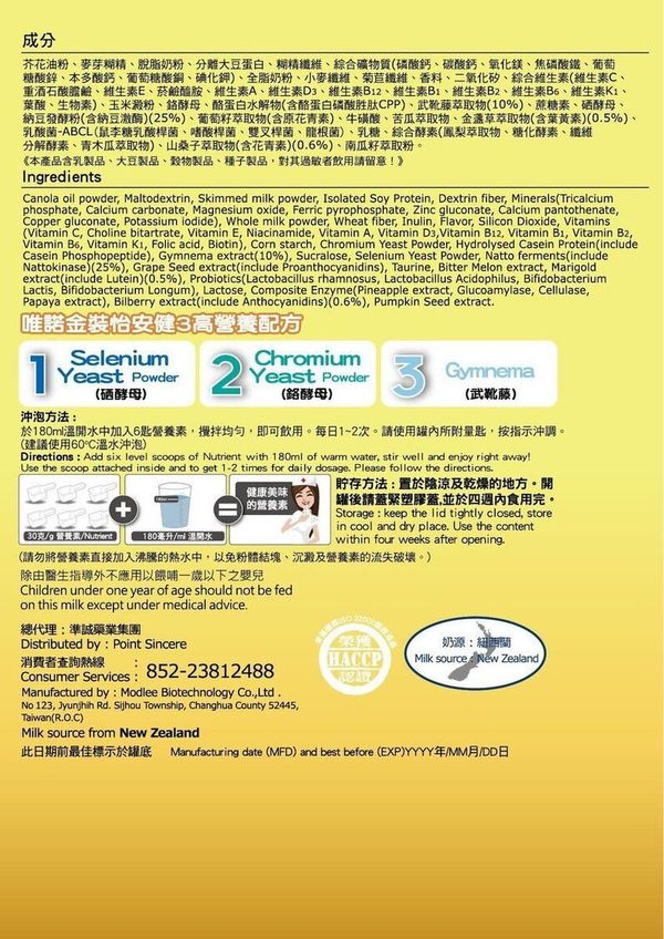 唯諾保健-唯諾金裝怡安健安糖營養素 900克