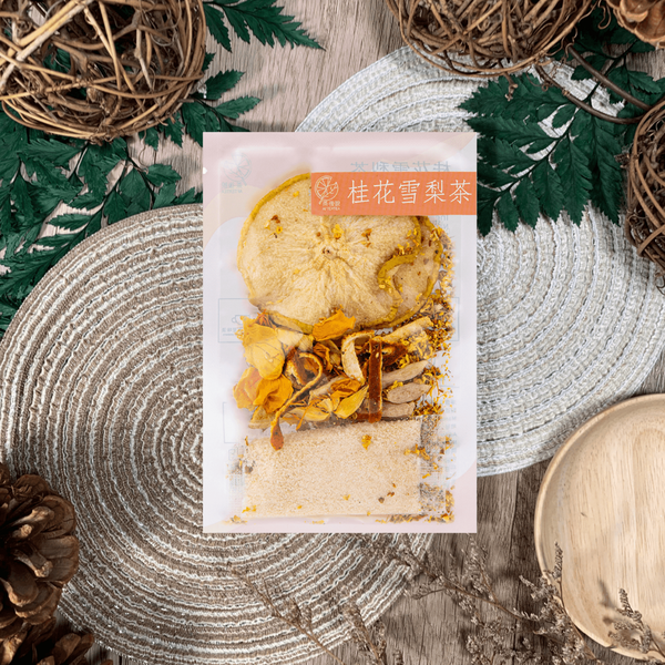 桂花的淡香、雪梨的滋潤,加上其他性質溫和的材料,讓桂花雪梨茶成為最溫柔的花果茶。男女老少都適合飲用喔!