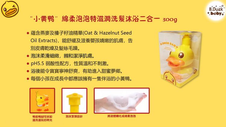 B DUCK“小黃鴨”綿柔泡泡特滋潤洗髮沐浴二合一 300g
