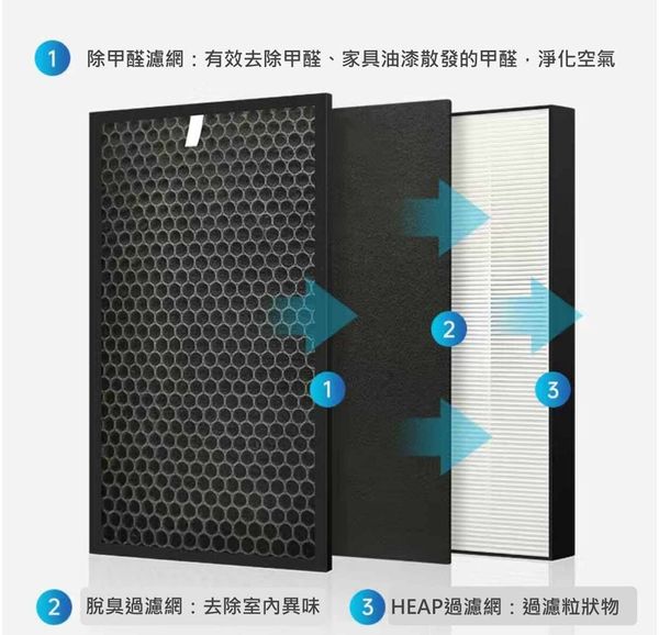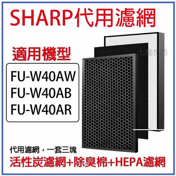 七點-代用濾芯 Sharp空氣清新機代用濾網 一套三塊 HEPA+除甲醛+活性碳濾網濾芯組合 - 適用於Sharp FU-W40AW FU-W40AR FU-W40AB