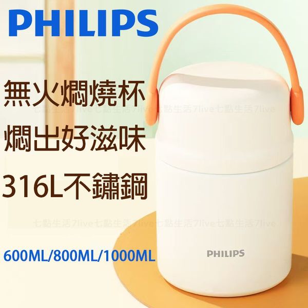 Philips 飛利浦-保溫飯盒 316L不鏽鋼 返工族學生帶飯便攜保溫壺 保溫湯壺 飯壺 保溫燜燒杯 米白色800ML 平行進口