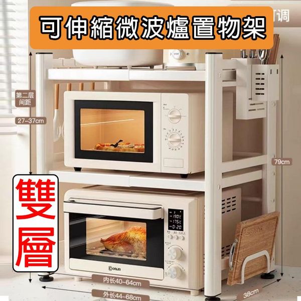 七點-可伸縮 雙層微波爐置物架 白色 微波爐架 焗爐架 廚房收納 微波爐置物架 微波爐儲物架 微波爐收納架 微波爐櫃子 廚房收納架子 廚房置物架 廚房儲物架 優雅白+全套(雙層伸縮特厚穩固64cm)