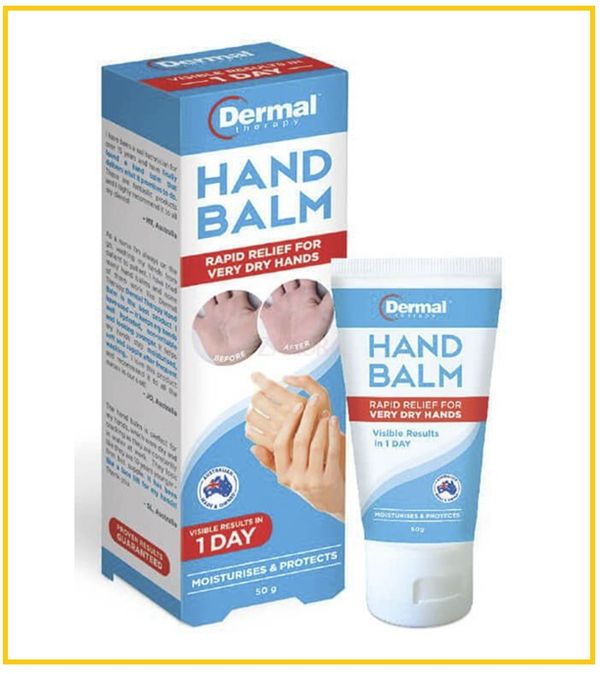 - Dermal Therapy Hand Balm for very dry skin contains 10% urea and 2% dimethicone, offering a rich moisturising base to care for very dry hands