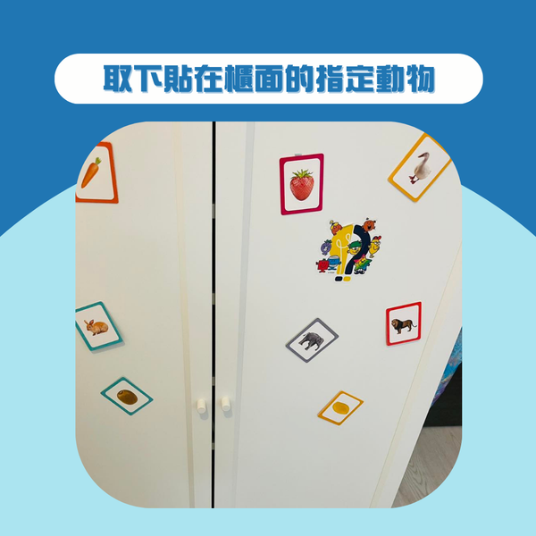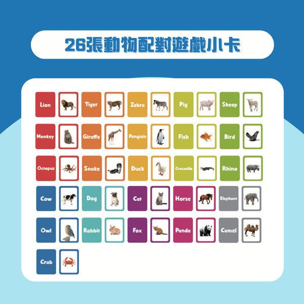 ✅26張配對遊戲小卡玩matching game,前面係flashcard同款實物圖,背面係動物英文名。