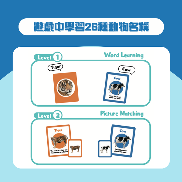 ✅一邊玩配對遊戲、一邊學習26種動物英文名稱