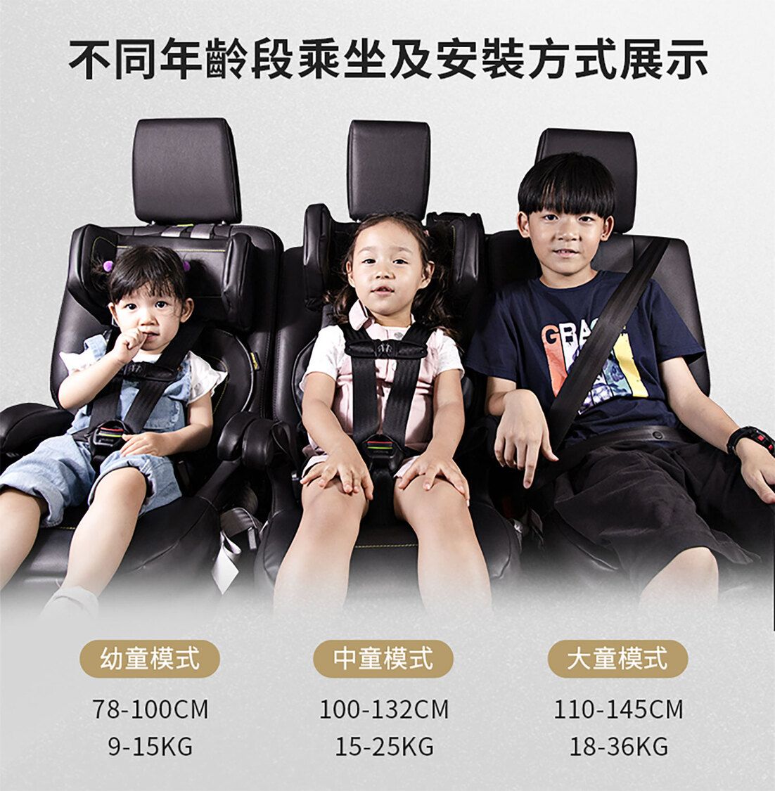 當轉換為增高墊模式時,確保孩子在以下的使用範圍內。 此外,兒童耳朵的頂部應低於汽車原車座位或汽車頭枕的頂部。