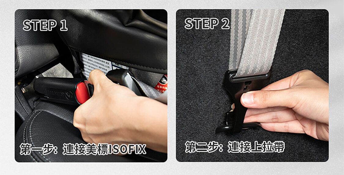IMMI GO符合美國和中國的法規要求,安裝方式支持“汽車安全帶+上拉帶(TOP TETHER)”和“LATCH(美標ISOFIX)+上拉帶(TOP TETHER)”安裝。 具體安裝方法請參考座椅側面的安裝說明和手冊,也可以查看“視頻”部分的安裝演示。
