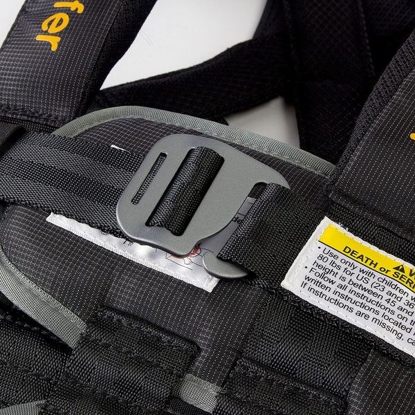 5點式保護: RideSafer搭配Tether能把約束受力點從3個點升級到5個點,大大提高約束效能和撞擊力的平衡分布.