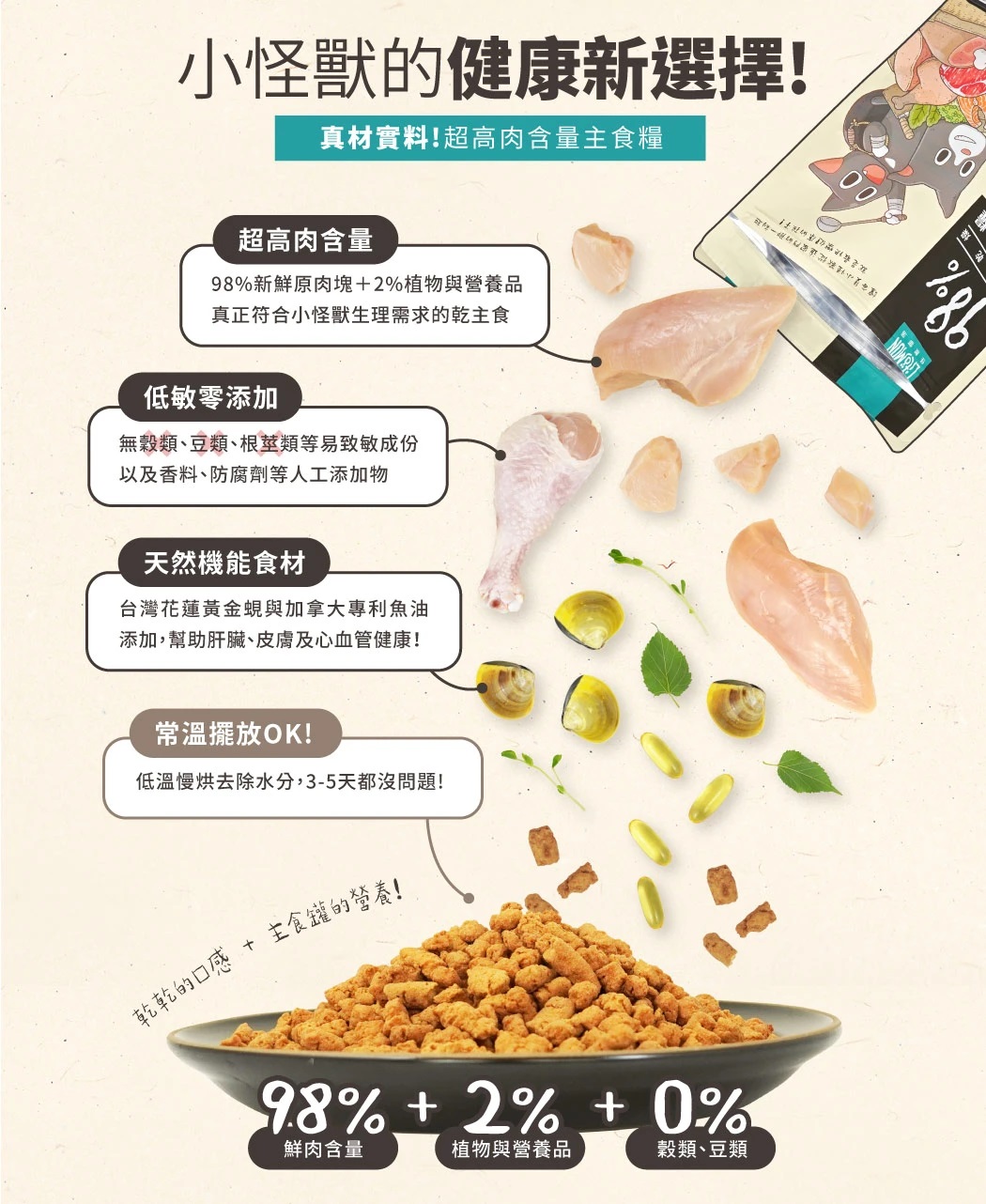 怪獸部落 - (雞肉味) 貓用98%鮮肉主食糧 1.8kg - LM471770