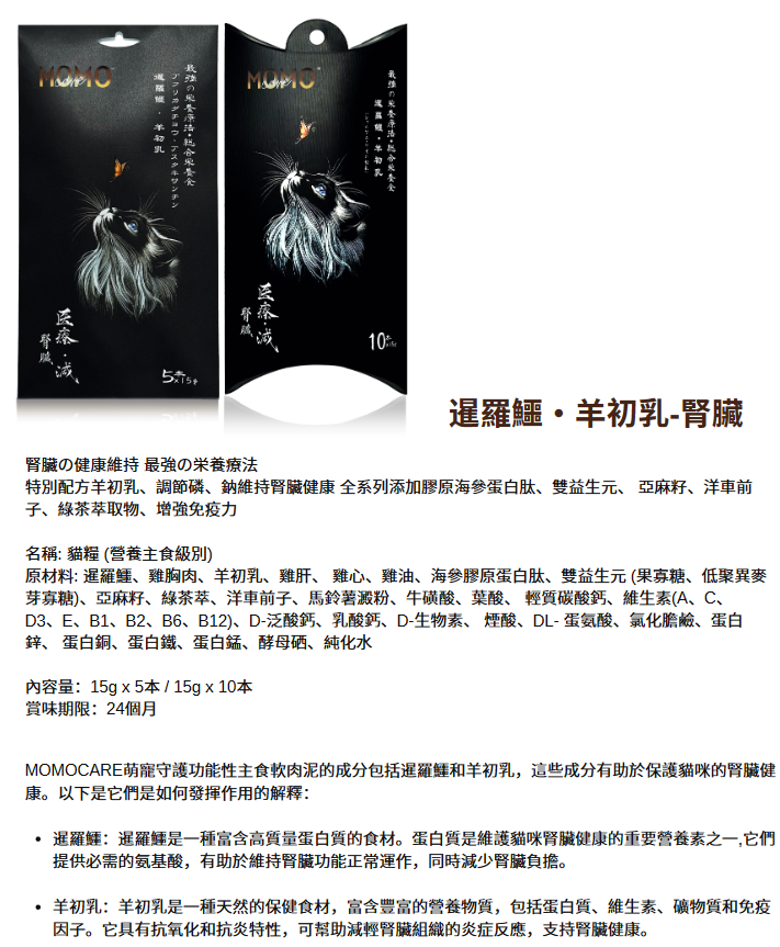 (EXP.DATE 2026.01.19)MOMOCARE - 暹羅鱷+羊初乳 腎臟功能性主食軟肉泥 (10本入*15G) - MC124001