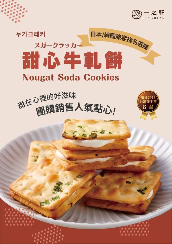 香酥脆的蘇打蔥餅,搭配加入海藻糖製成奶香濃郁的牛軋糖,散發鹹鹹甜甜的絕配好滋味。