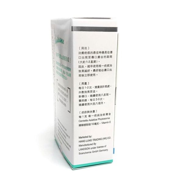 功效: 止痕止痛、去紅腫、去瘀、殺菌預防感染、去印、強力傷口癒合、抑制疤痕形成。