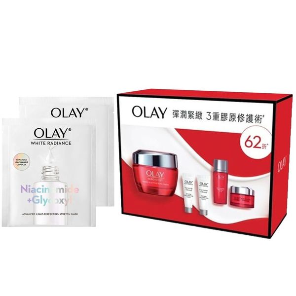 Olay 玉蘭油 彈潤緊致套裝(新生高效緊緻護膚霜 50克+14克 + 精華水18毫升 + 高效透白光曜精華 6毫升2支)+ 水感透白光曜鑽紋彈力面膜 2片 平行進口商品