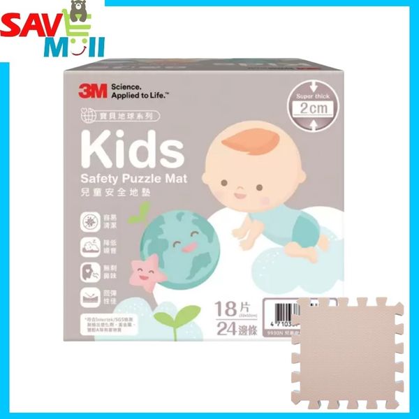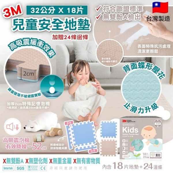 台灣製造 3M 兒童安全防撞地墊 (42件組), 18片 (32x32cm) + 24 邊條 , 奶茶色, 平行進口