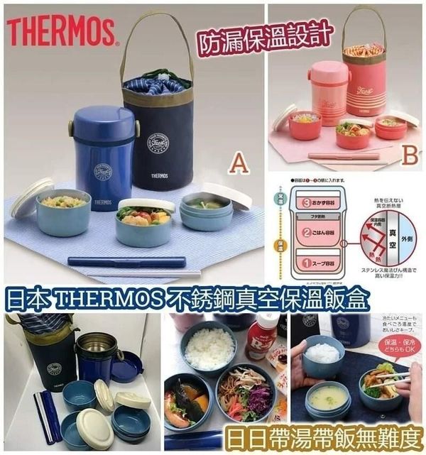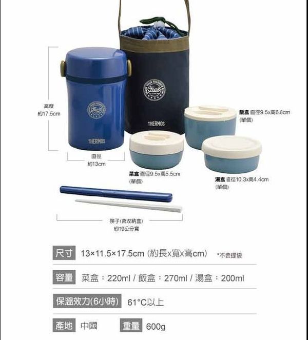 膳魔師-三層真空保溫飯壺連便攜袋 JBC-801(海軍藍), 平行進口