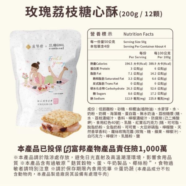 盧琴樹 - 台灣製玫瑰荔枝糖心酥, 12顆/包, 平行進口, 有效期 2025 年8月4日