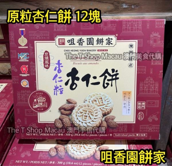 咀香園 炭燒 原粒 杏仁粒杏仁餅 12塊 - 澳門手信 澳門美食 人氣澳門手信 澳門新鮮直送香港
