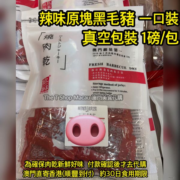 鉅記- 辣味原塊黑毛豬 (1磅/包) 一口裝 真空包裝 - 澳門手信 澳門美食 人氣澳門手信 鉅記炭燒肉乾 澳門新鮮直送香港