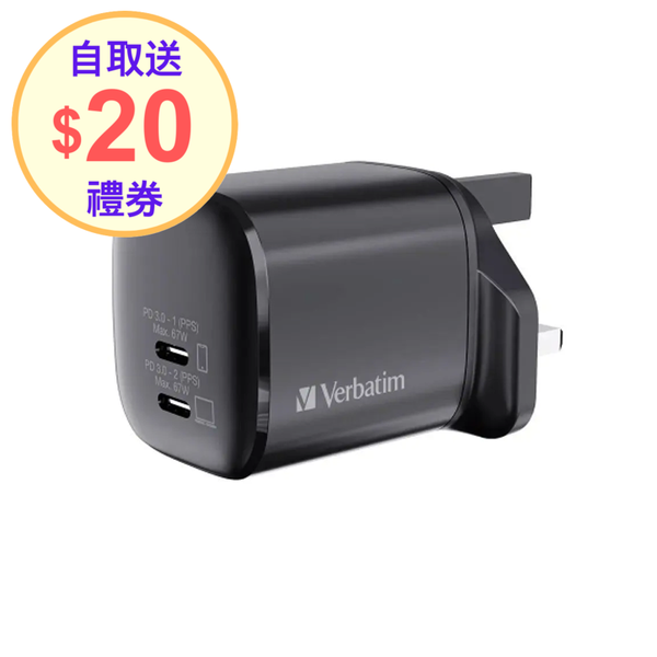 Verbatim 2端口GaN充電器採用先進GaN技術打造,以超小尺寸為您的流動裝置提供高達67W的快速充電功率,兼容大多數配備Type C的手提電腦和設備充電,體積超細,能輕鬆放入手提電腦袋中。