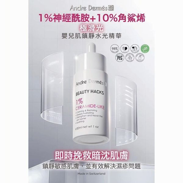 1%神經酰胺 - 嬰兒肌鎮靜水光精華 (保濕、補水、抗氧化、水油平衡、抗衰老、減淡細紋、修復、改善暗啞、舒緩、敏感肌)