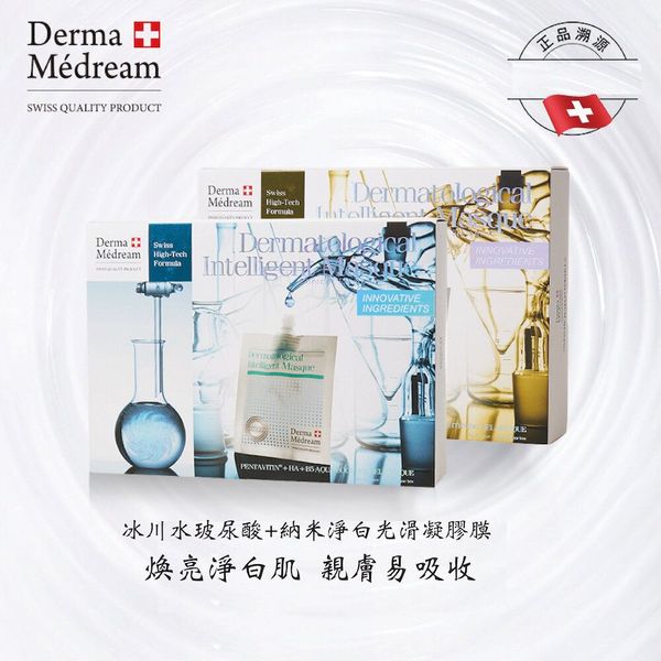 Derma Medream - 冰川水玻尿酸+納米淨白光滑凝膠修護面膜套裝(補水、提亮、減淡細紋、敏感肌、美白、緊緻) CB013