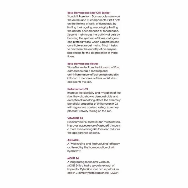 大馬士革薔薇花水對皮疹和敏感皮膚具有舒緩和消炎作用,可潔淨柔軟、滋潤皮膚及更生功效,讓肌膚緊緻飽滿,有助喚醒肌膚吸收能力。