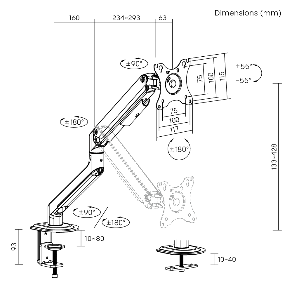 北弧 - BRATECK 經濟型彈簧輔助顯示器支架臂 (適用17" - 32"/ 9KG) LDT63-C012