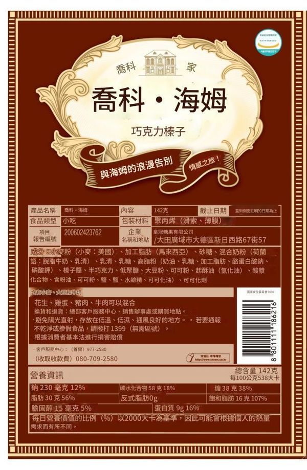 CROWN 白巧力海姆(榛果)奶油華夫餅 【平行進口】8801111115223 EXP.2025.11.19