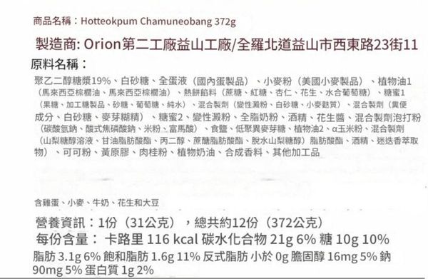 Orion 小魚糯糯蛋糕 糯米花生味 372g 【平行進口】8801117563509 EXP.2025.10.13