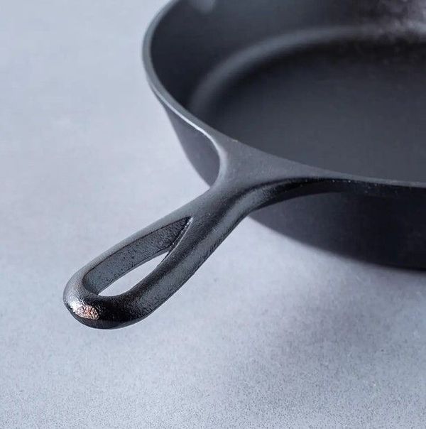 1. 使用平底鍋刮刀、毛刷去除鍋上的食物殘渣, 可以使用少量清潔劑沖洗鑄鐵鍋