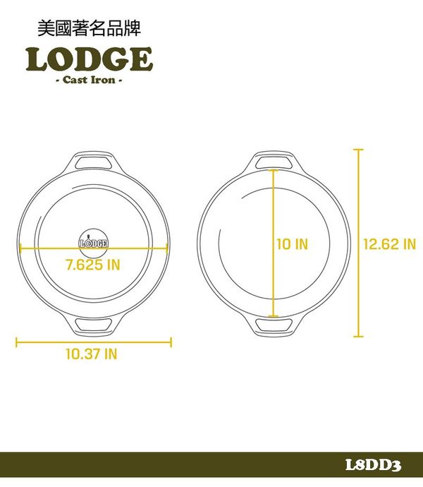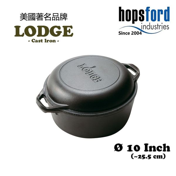 Lodge - 10"鑄鐵雙層鑄鐵鍋 (荷蘭烤箱) L8DD3INT 明火-電磁爐-電爐-焗爐適用