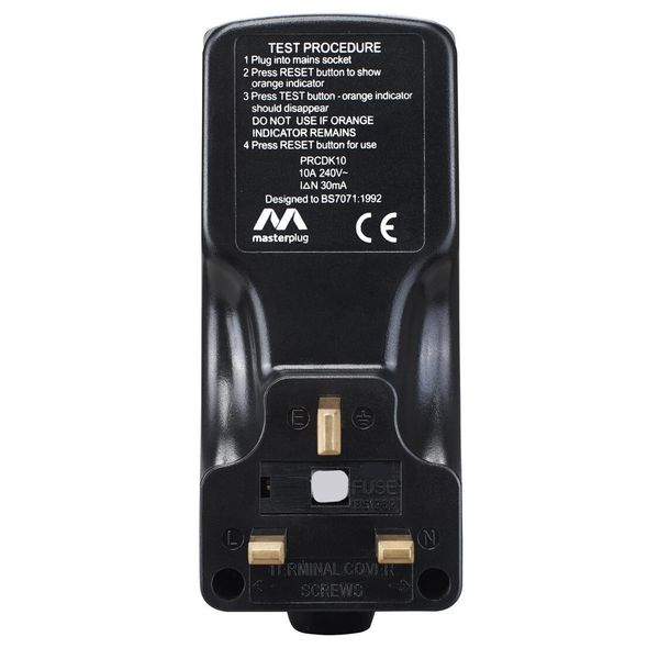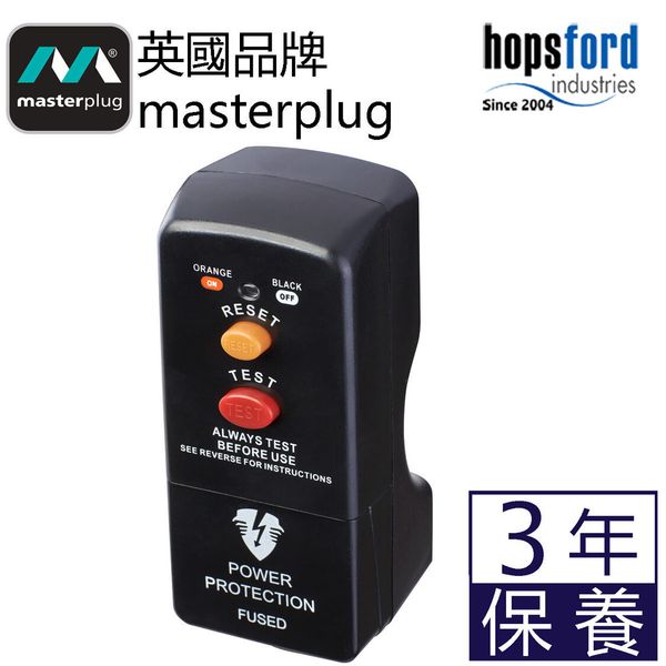 Masterplug - RCD 漏電保護插頭 英式三腳 接地故障斷路器 黑色 PRCDKB