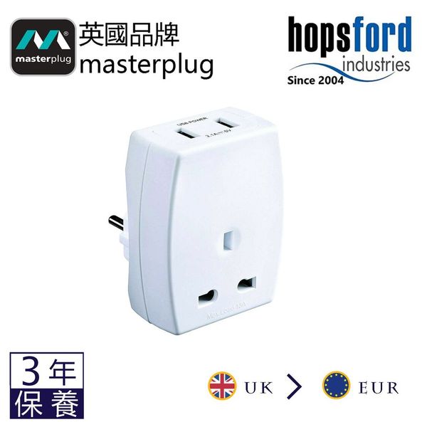 Masterplug - 旅行轉換插頭 USBx2 [三腳-轉-兩腳圓頭] TAUSBEUR2