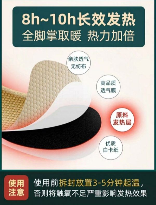 精密控制透氧滲透率,保證更長更隱定的溫度滲透,發熱更穩定,散熱更均勻。,開袋即熱,平均42度腳底感知更舒適的溫度,暖而不燙。