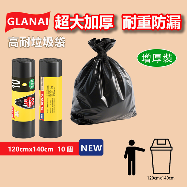 GLANAI 高耐專注於高品質加厚垃圾袋,結合防漏、耐撕裂與大容量設計,讓家用與商用環境都能輕鬆保持潔淨。