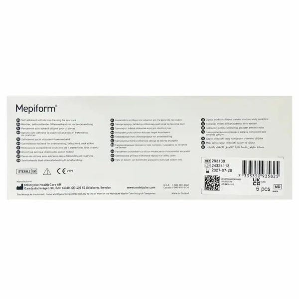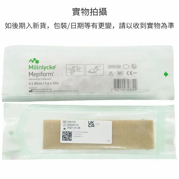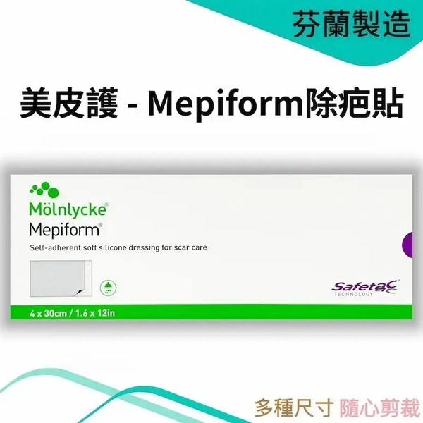 [2盒裝]【醫療級|長條疤痕護理貼】Mepiform 自黏軟矽膠敷料 4×30cm(長度可裁剪|芬蘭製造|瑞典 Mölnlycke|手術疤痕|剖腹產|意外疤痕護理)平行進口 有效期2027-07