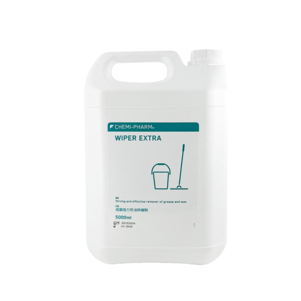 WIPER EXTRA 為 Chemi-Pharm 針對高污染環境所研發的強效鹼性多用途清潔劑,專門處理地板蠟層、油脂、水垢、煙垢與固化污漬等難清重點。從家庭廚房、餐飲業、辦公室地板、到工業設施都可應用,是專業清潔團隊與高需求家庭的理想選擇。