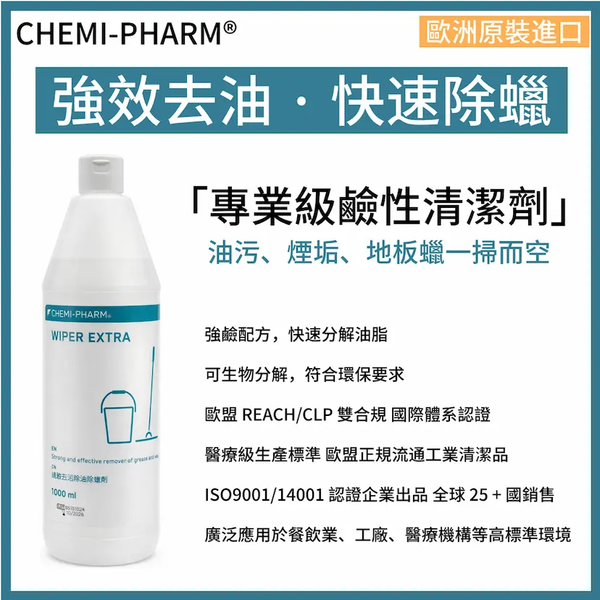 Chemi-Pharm WIPER EXTRA 強效鹼性清潔劑 1000ml|高濃度去油去污|地板蠟層剝除|重油煙垢分解|適用家庭與專業清潔