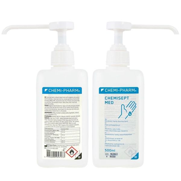 CHEMI-PHARM-[2支裝]醫療級酒精搓手液Chemisept Med 500ml|滅活病毒力壓一般酒精 | WHO推薦80%乙醇配方|医院/診所/機構/家庭防疫必備|敏感肌適用|無香料無色素|#消毒酒精 # 消毒火酒