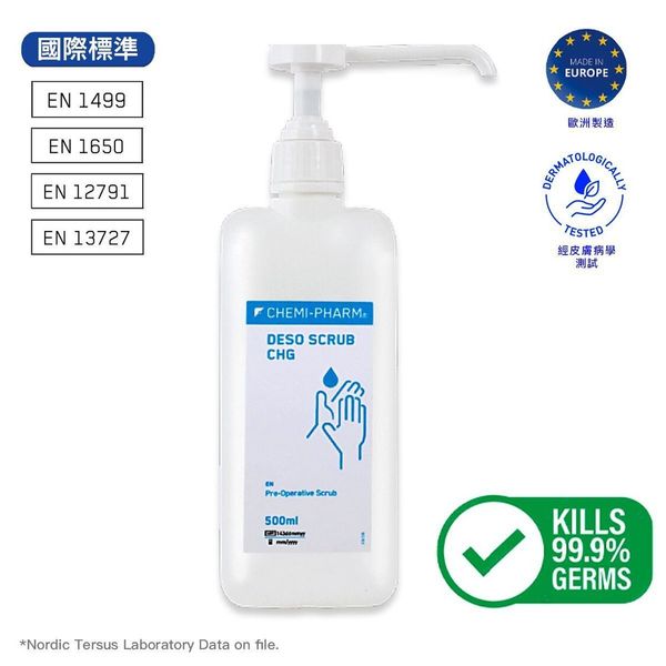 【Chemi-Pharm DESO SCRUB CHG 4%】醫療級抗菌洗手液|手術前消毒|長效抗菌|無酒精配方|愛沙尼亞製造