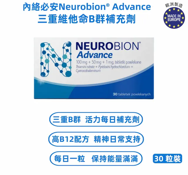 Neurobion® Advance 維他命 B 群補充劑(30 粒裝)|三重維他命 B 配方|波蘭製造