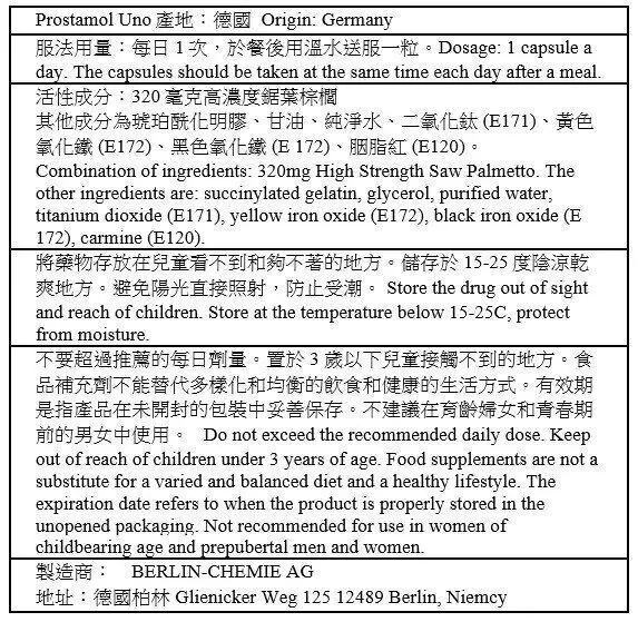 Prostamol® Uno 320mg 植物性前列腺保健膠囊(90 粒裝)|鋸棕櫚果實提取物|德國原裝製造|長期使用安全可靠