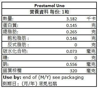 :鋸棕櫚果實萃取物(Serenoa repens)320mg/粒(萃取比例 9–11:1,乙醇作溶劑)