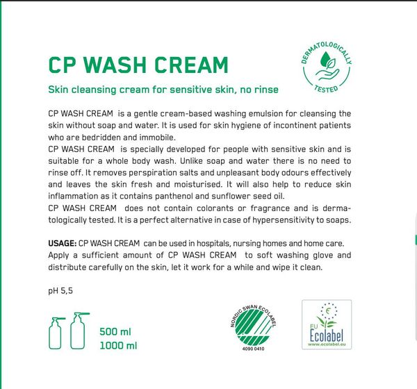 CP Wash Cream 是一款來自北歐醫療體系的免沖洗潔膚乳,專為長期臥床、術後康復、失禁與失能族群設計,亦適用於日常肌膚敏弱人士。產品廣泛應用於歐洲各大醫院、長照機構與居家護理服務中,是無法使用清水清潔時的專業級潔膚替代方案。