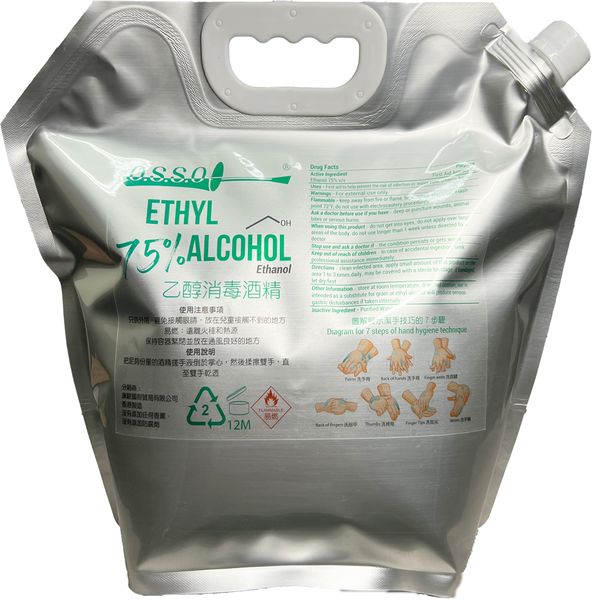 75% 乙醇消毒酒精 (水劑) 5000ml 袋裝補充裝