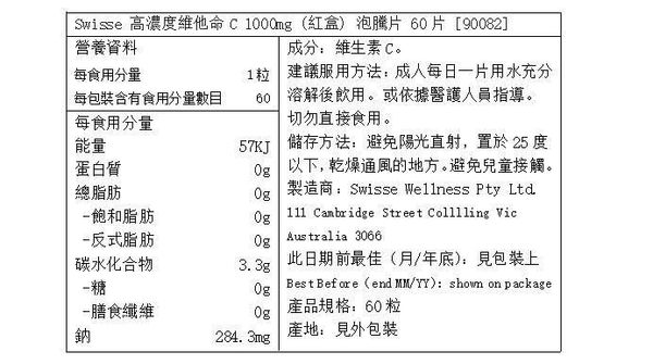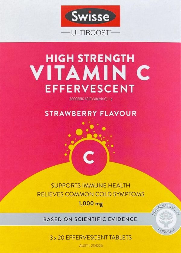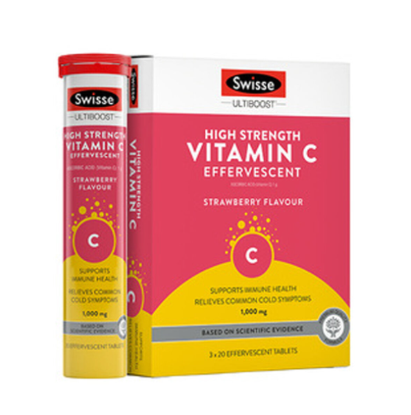 Swisse Ultiboost 高濃度維他命 C 泡騰片配方可促進免疫系統及能量水平。Swisse Ultiboost 高濃度維他命 C 泡騰片符合高品質標準,為難以吞服大片劑或膠囊的人提供使用天然香料的替代美味泡騰片。