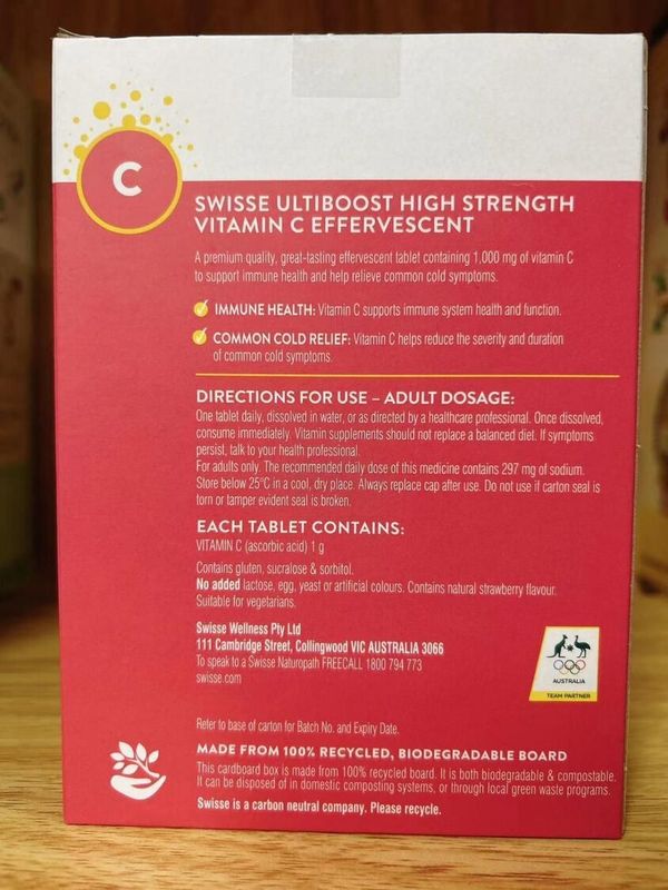 Swisse Ultiboost 高濃度維他命 C 泡騰片支持: