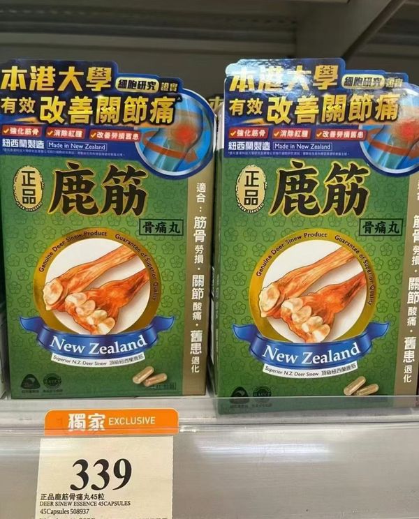 「正品鹿筋骨痛丸」採用紐西蘭的頂級鹿筋、鹿骨鈣、櫻桃萃取及磷蝦油,功能迅速潤滑關節及修補勞損、針對消除筋骨酸痛,大幅提升關節活動能力,有效使關節靈活輕鬆。